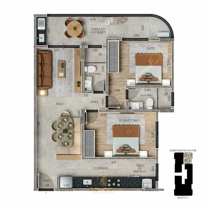 Os apartamentos contam com 2 dormitórios, sendo 1 suíte, além de banheiro social, sala de estar integrada à sala de jantar, cozinha, área de serviço e um terraço gourmet que valoriza seus momentos em casa. Cada unidade possui também vaga de garagem, garantindo mais comodidade na rotina.
