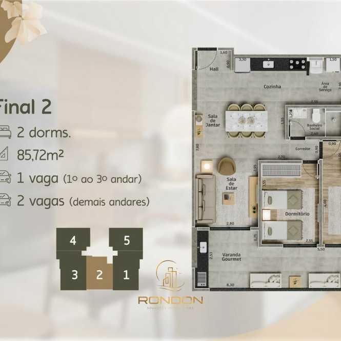 Entre elas, unidades com 2 dormitórios, sendo 1 suíte e banheiro social, ideais para quem busca funcionalidade sem abrir mão de um espaço bem resolvido. Já outras tipologias oferecem metragens e configurações mais amplas, atendendo perfis que desejam ainda mais exclusividade.
